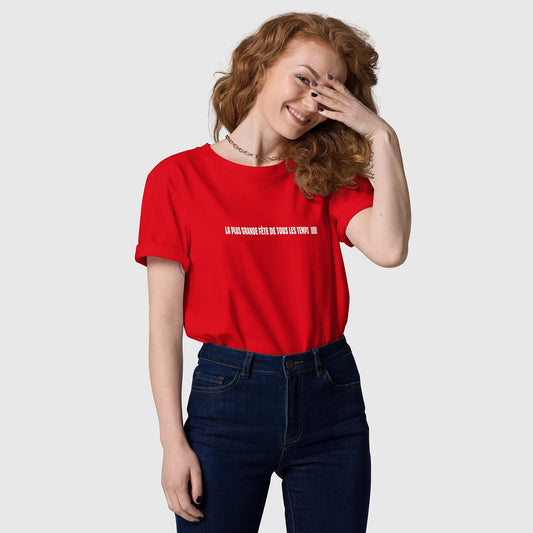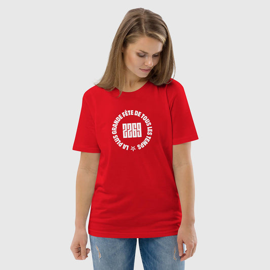 Unisex red organic cotton t-shirt with French 2269 party circle