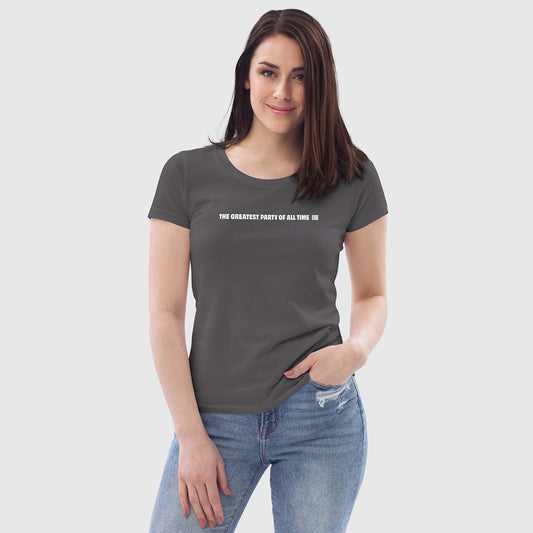 Women's anthracite fitted organic cotton t-shirt with English 2269 party message