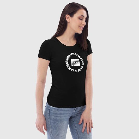 Women's black fitted organic cotton t-shirt with French 2269 party circle
