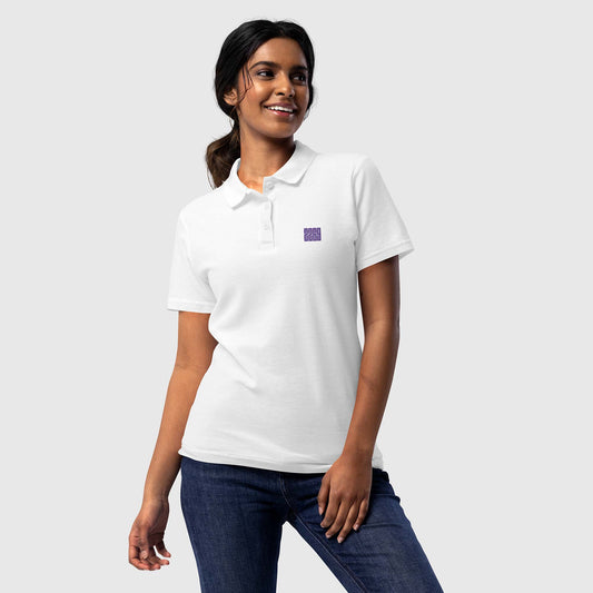 Women’s navy pique polo shirt with embroidered 2269 logo