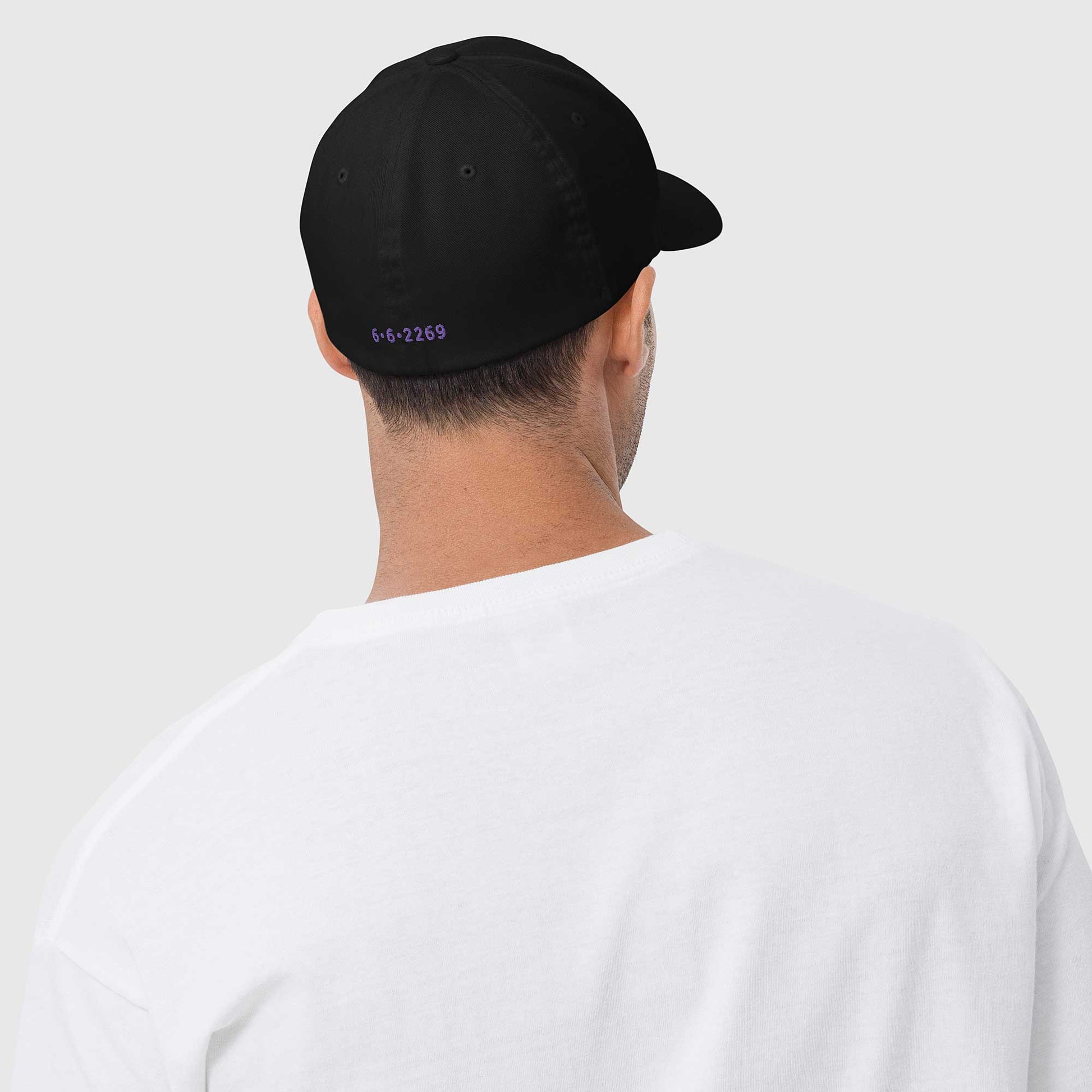 The 2269 logo on the front is subtly embroidered in black. And on the rear, the all-important 6•6•2269 date is embroidered in our signature purple.
